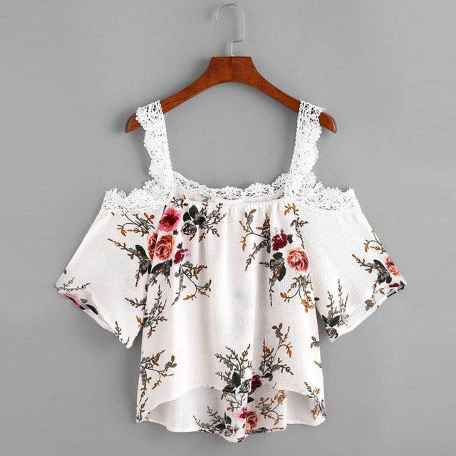 Cold Shoulder Sexy Print Casual Blouse