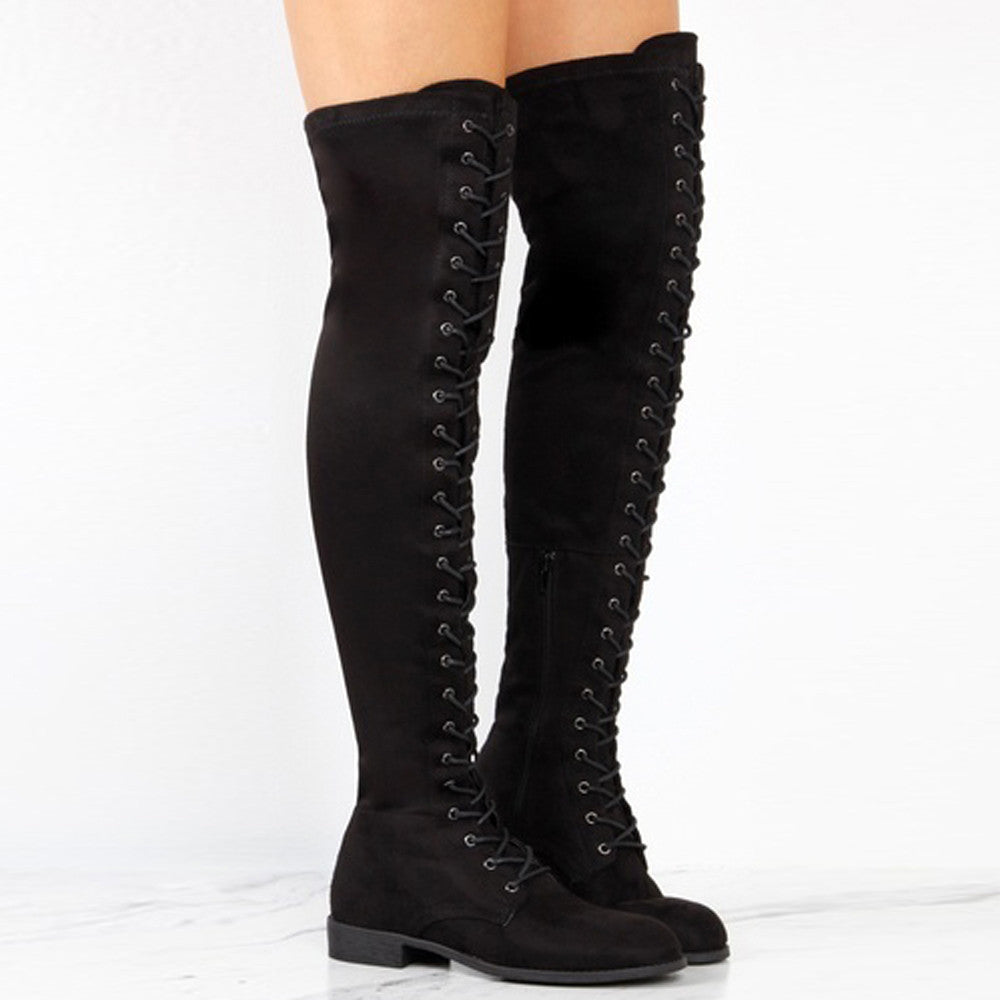 Women Cross-tied Platform Shoes High Boots Over The Knee Boots Flat Heel Boots